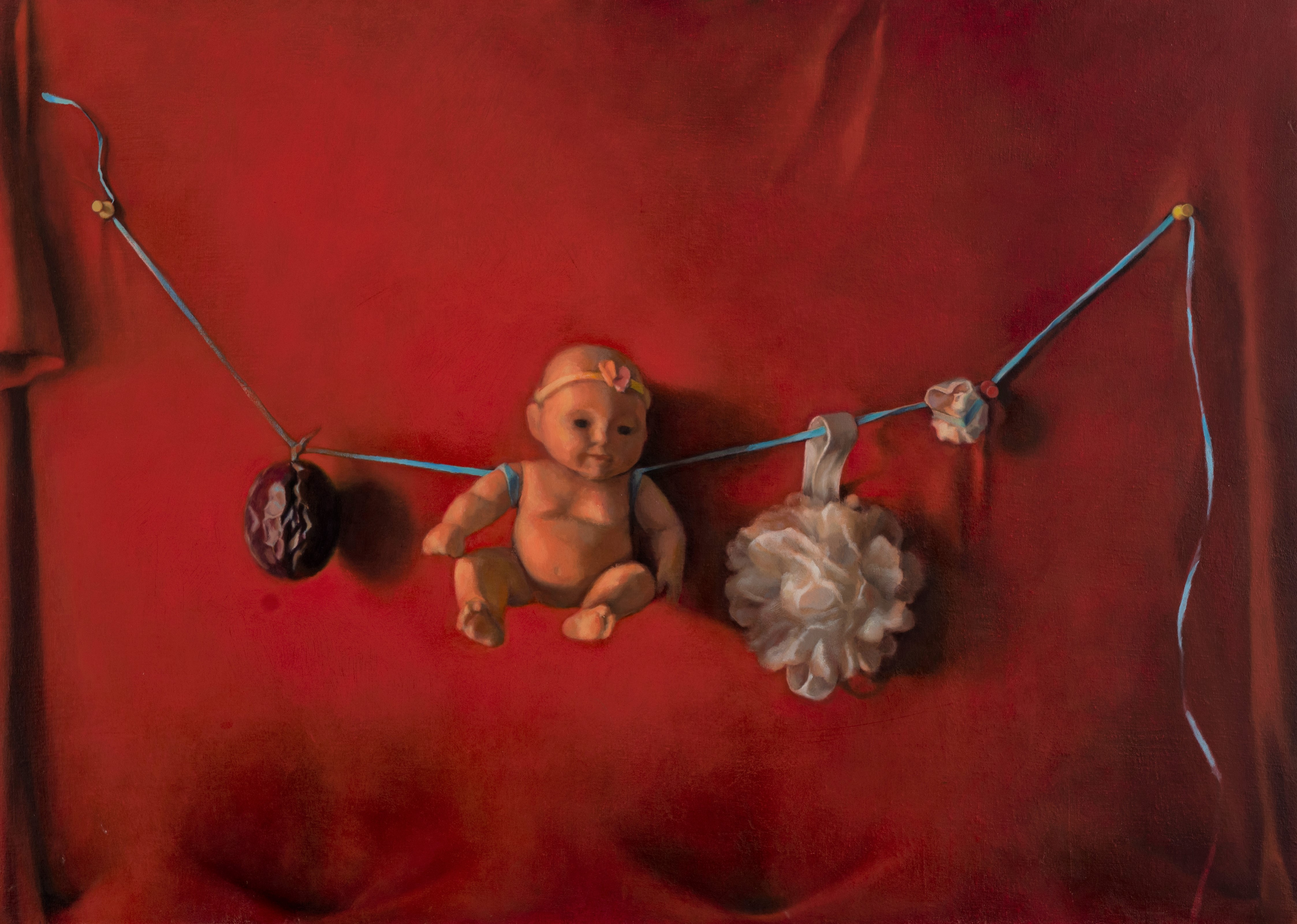 טבע דומם עם קונכייה, סרט שיער, בובה ופסיפלורה, סמדר בונן. צילום: סמדר בונן