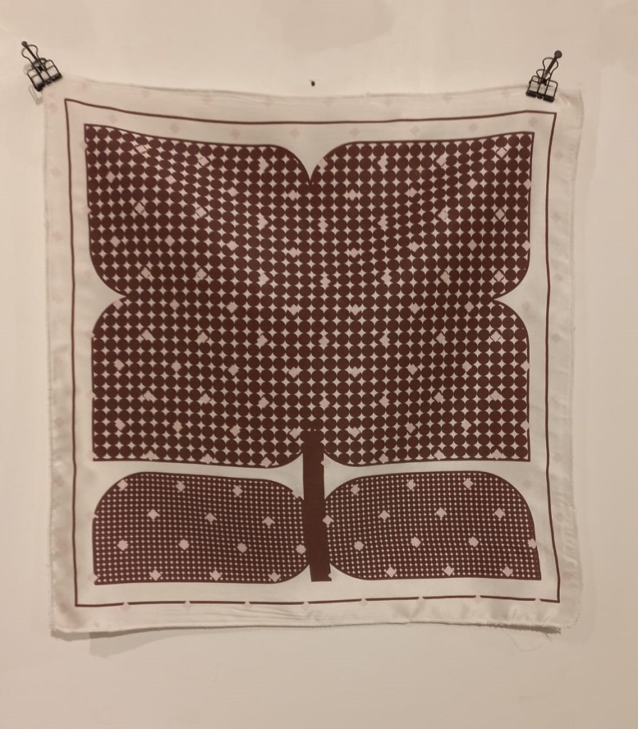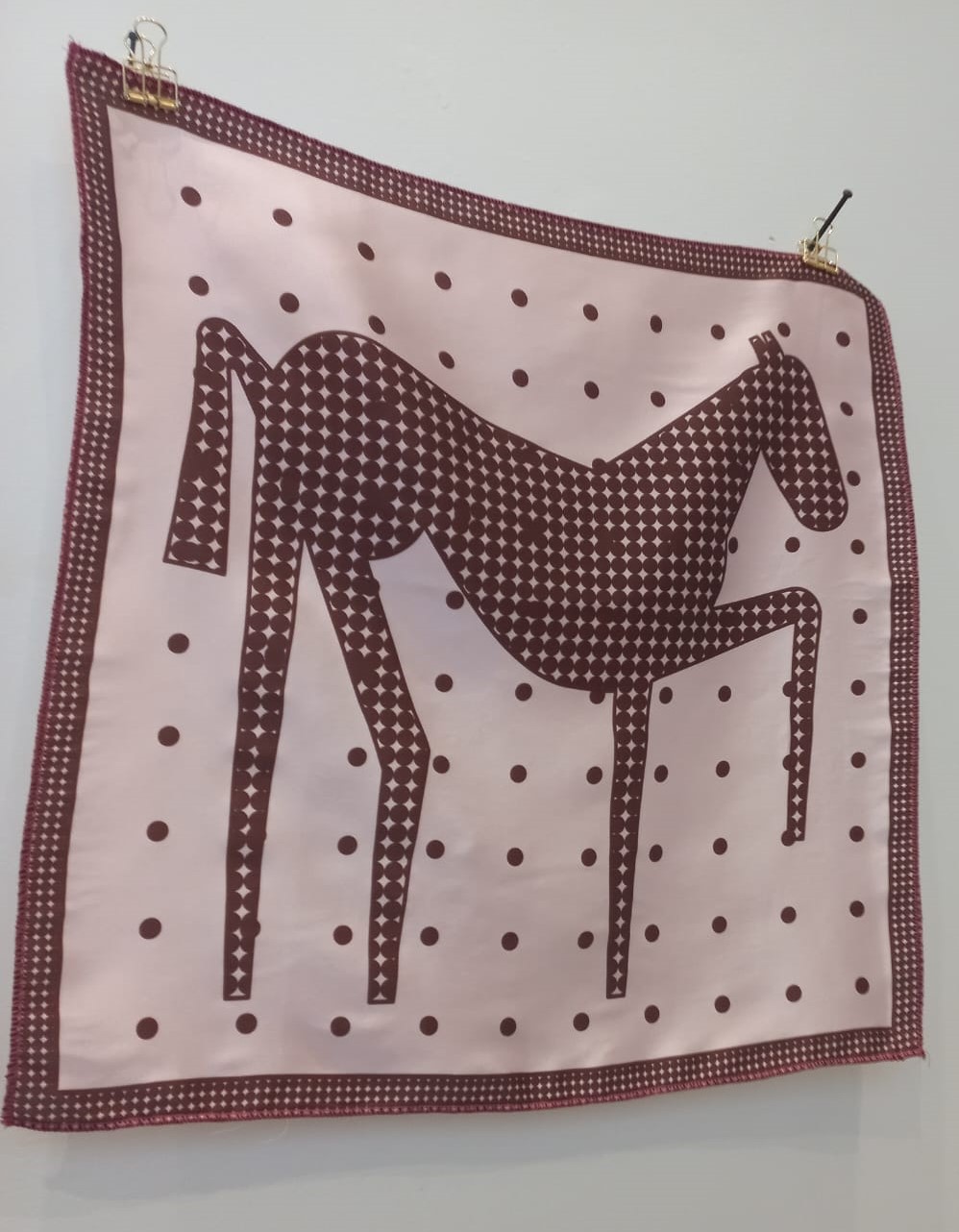 "בתערוכה החדשה שלה בבית חנה, המאיירת דניאל קמחי משתמשת בתצלומי ארכיון של בית חנה. מהמבנה עצמו, דרך משק הפועלות שהיה במקום ועד הלוגו המקורי, קמחי מייצרת אוסף של רפרנסים לפעילות ההיסטורית של בית חנה. הדפסת האיורים על מטפחת גם כן מרפררת לפועלות שעבדו במשק ועטו על ראשיהן מטפחות לבנות. בשונה מהמטפחות המקוריות שהיו בצבע לבן, המטפחות שמייצרת קמחי נעות על הסקאלה שבין ורוד לחום, צבעים שמתקשרים לכוח הנשי ועבודת האדמה כאחד.